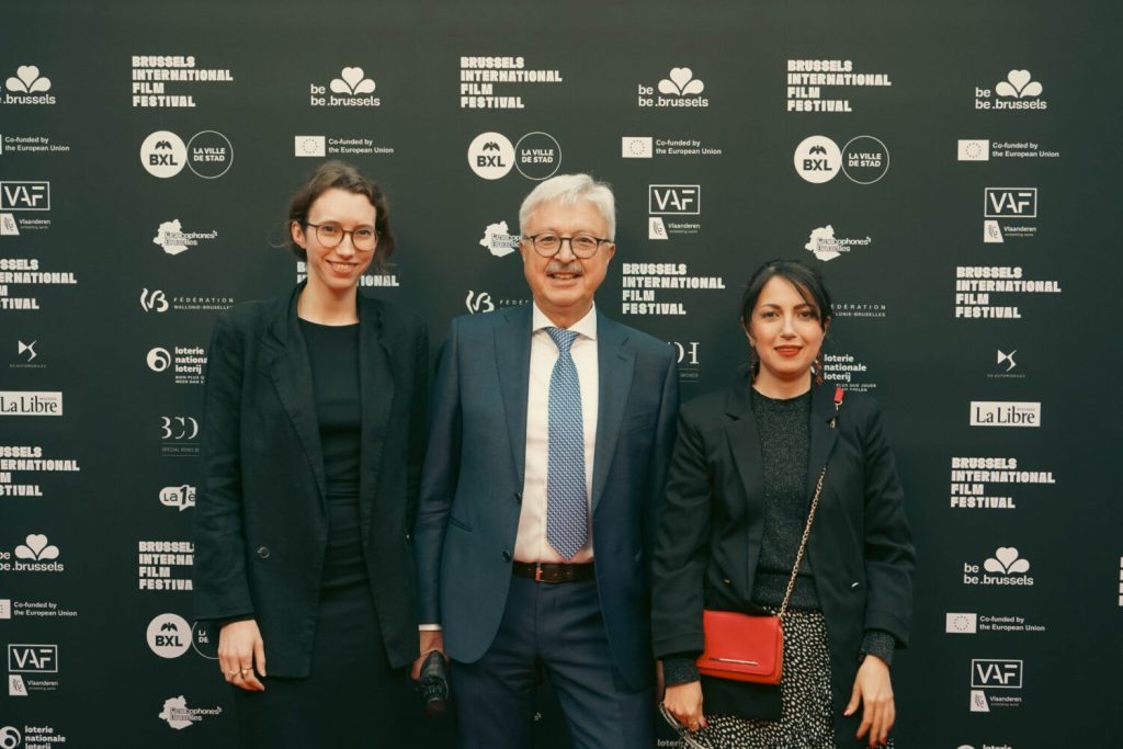 Josef Nagel mit seinen Jury-Kolleginnen Kathy Vanhout und Shiva Fouladi in Brüssel.