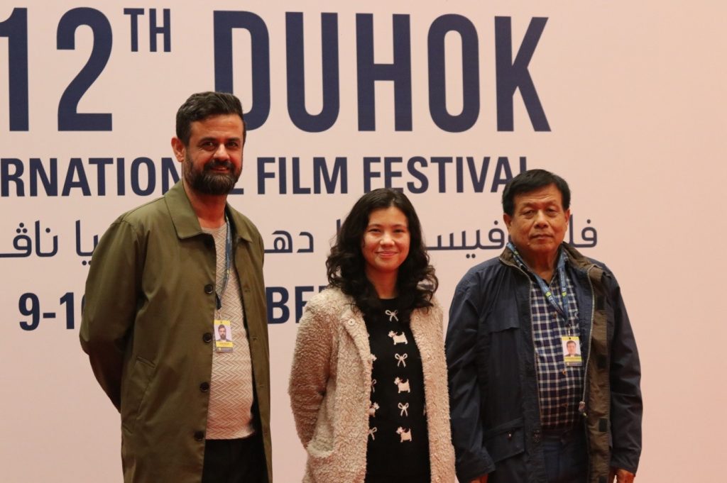 Olivia Popp mit ihren Jury-Kollegen Kovan Hussein und Meghachandra Kongbam in Duhok.