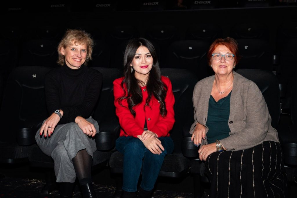 Britta Schmeis mit ihren Jury-Kolleginnen Assiya Issemberdiyeva und Tereza Brdecková in Mannheim.