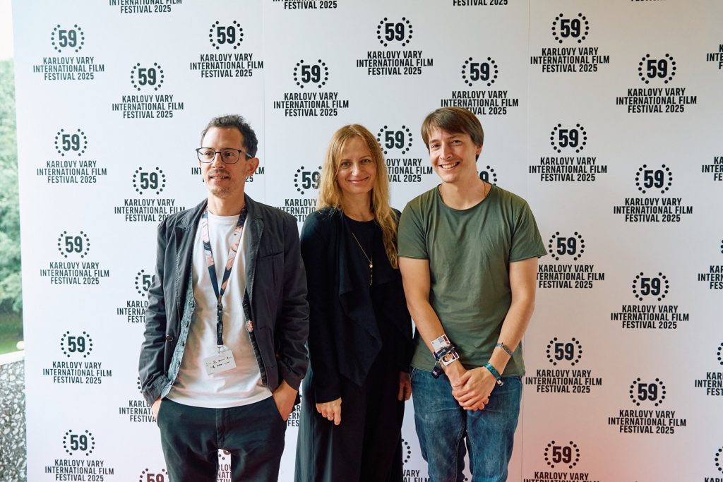 Patrick Fey (rechts) mit Jury-Kolleg*innen Christos Skyllakis und Ela Bittencourt in Karlovy Vary.