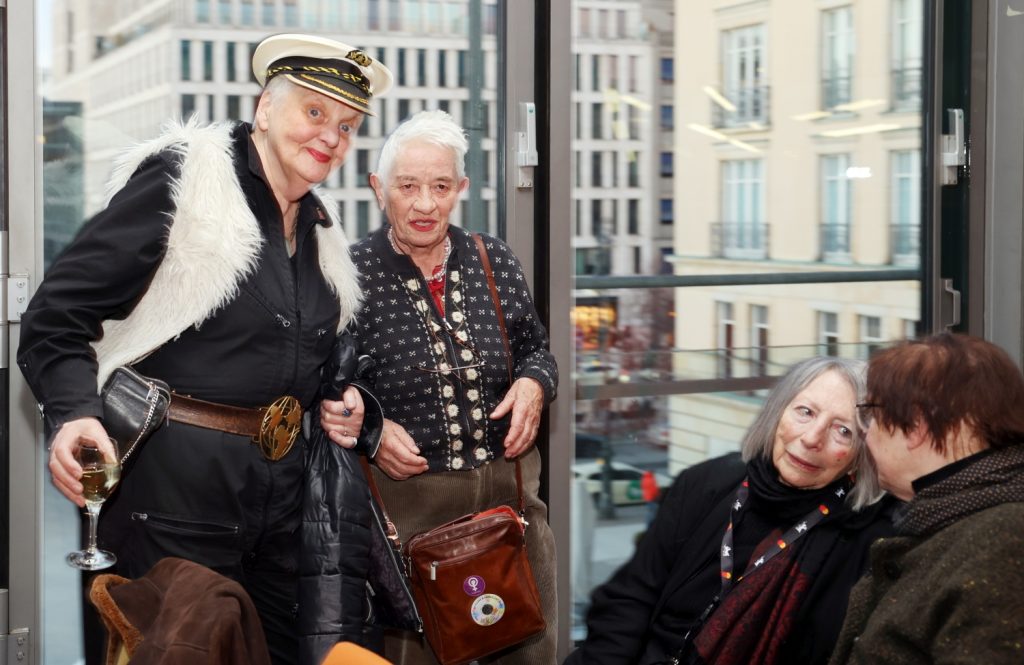 Impressionen vom Empfang des VdFk III: Ehrenpreisträgerin Elfi Mikesch im Gespräch mit Wegbegleiter*innen. Foto: © Sabine Gudath/VdFk.